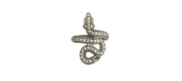 Anillo de serpiente de plata repleta de circonitas y piedras semipreciosas.