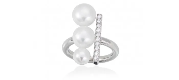 Anillo de plata de primera ley (925) con baño de rodio. circonita blanca y perlas cultivadas.