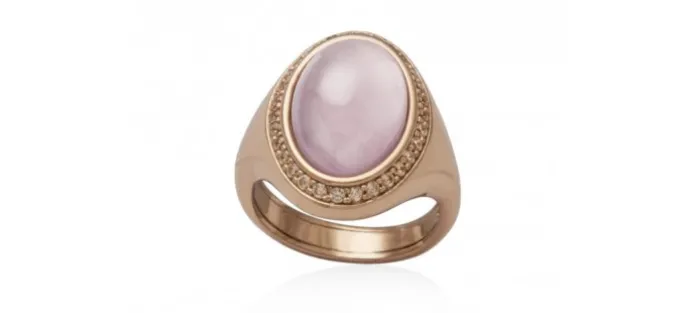 Anillo de plata de primera ley (925) chapada en oro rosa de 18kt con circonita coñac y doblete de cuarzo milky y nácar rosa.