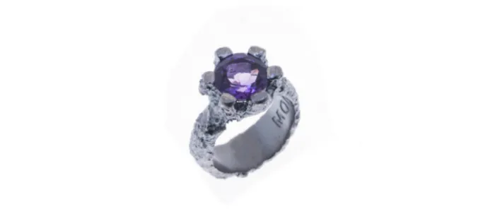 Anillo texturado de plata envejecida de primera ley (925) con una Amatista natural de 10mm.