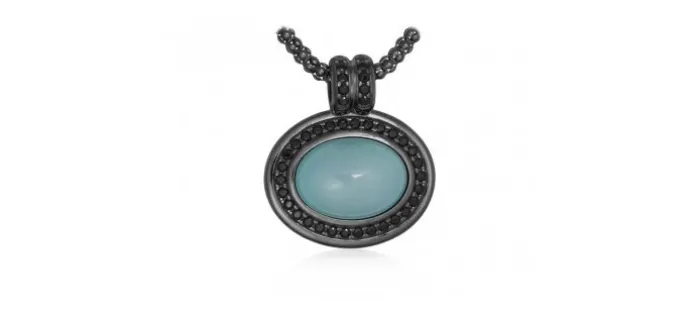 Colgante de plata de primera ley (925) con baño de rutenio, circonitas y doblete cuarzo turquesa. (Cadena no incluida)