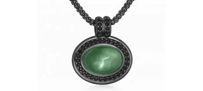 Colgante de plata de primera ley (925) con baño de color, zirconitas y doblete cuarzo verde. (Cadena no incluida)