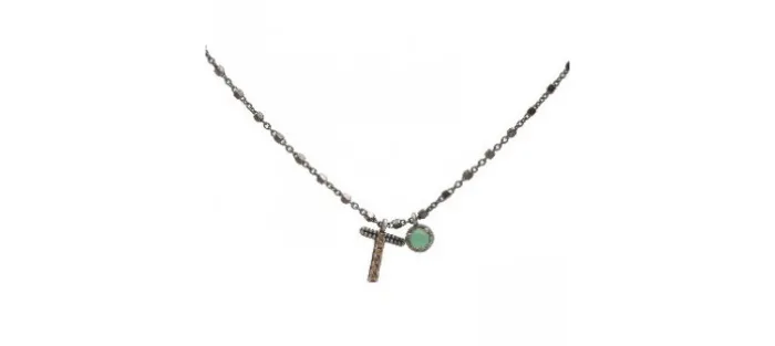 Colgante plata envejecida (925) letra T calcedonia y circonitas.