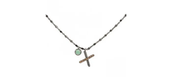 Colgante plata envejecida (925) letra X calcedonia y circonitas.