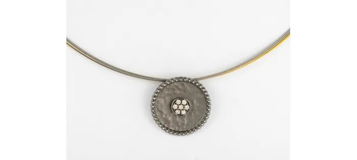 Colgante de plata de primera ley (925) con baño de rutenio y circonita coñac. Medida de largo 42 cm.