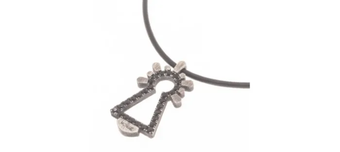 Colgante de plata envejecida de primera ley (925) con Circonitas negras y caucho de 42 cm. (Posibilidad de hacer el caucho en cualquier medida).