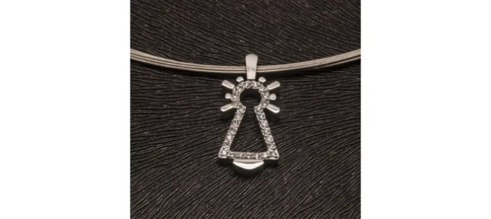 Colgante de oro blanco de 18K y diamantes G/H Vs1. Incluye sirga de acero.