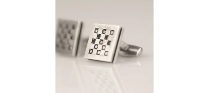 Gemelos cuadrados en plata envejecida de primera ley (925). Cada gemelo lleva engastados 13 diamantes negros de 1,6mm, con un peso aproximado de 0,28 Quilates (Peso total de los brillantes 0,56 Quilates).