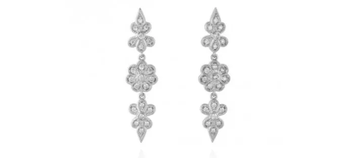 Pendientes de plata de primera ley (925) con baño de rodio y circonita blanca. (largo: 4,2 cm.)