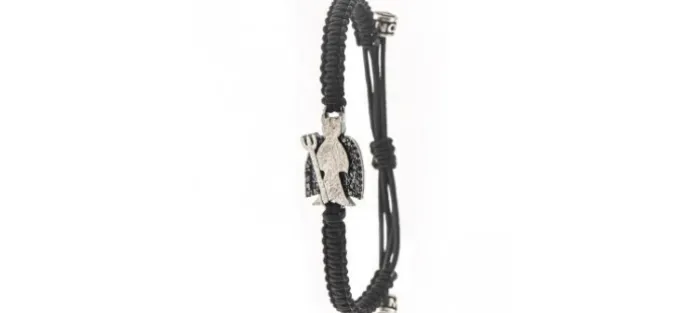 Pulsera de plata envejecida de primera ley (925), diamantes negros y nylon náutico (muy resistente). Peso aproximado de las piedras 0,32 Quilates.