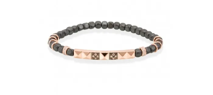 Pulsera de plata de primera ley (925) con baño de rutenioy chapado en oro rosa de 18kt con circonita coñac y hematites. (medida de muñeca: 17 cm.)