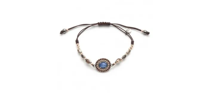 Pulsera de plata envejecida (925), Cianita y Circonitas. Cierre de nudos corredizos.