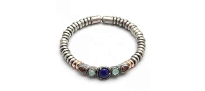 Pulsera de plata envejecida de primera ley (925), oro rosa, piedras Semipreciosa, Calcedonia azul y Lapislázuli.