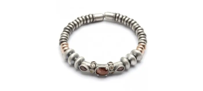 Pulsera de plata envejecida (925) con PVD en oro rosa, Granate y Circonitas.