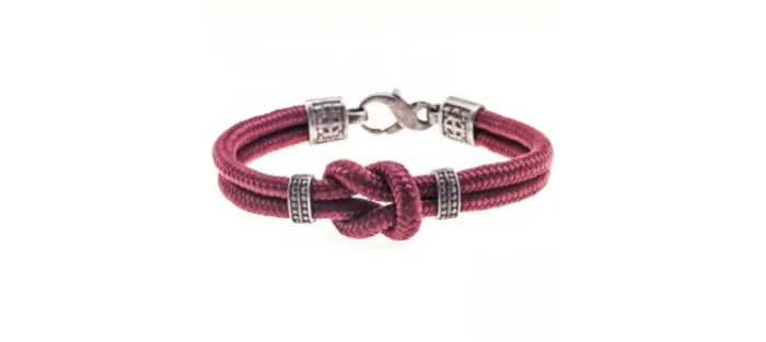 Pulsera unisex de plata envejecida de primera ley y nylon (granate).