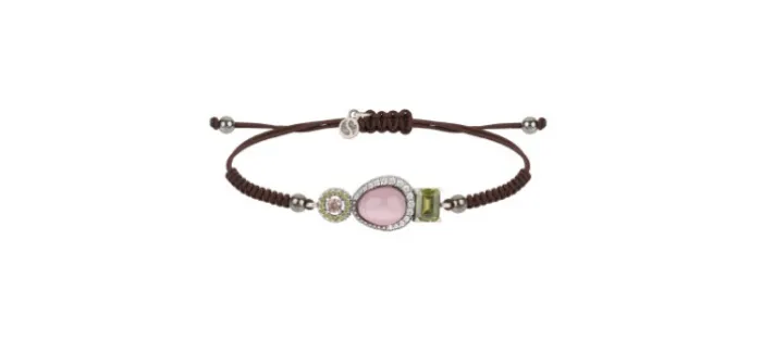 Pulsera de plata de ley 925, cuarzo pink fantasy, circonitas y nylon.