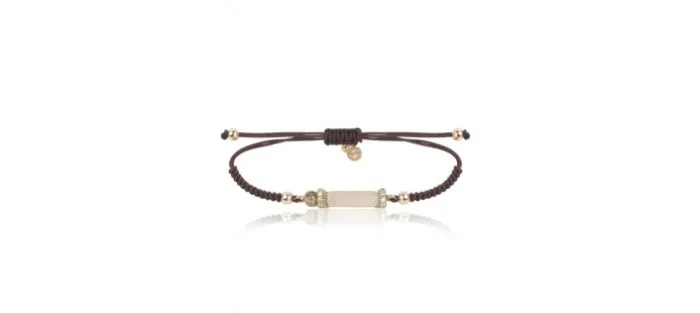Plsera de mplata con baño de oro rosa, cuarzo rosa, circonitras y nylon marrón.