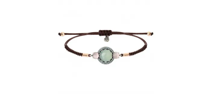 Pulsera de plata de ley 925 con calcedonia, cuarzo rosa, circonitas y nylon.