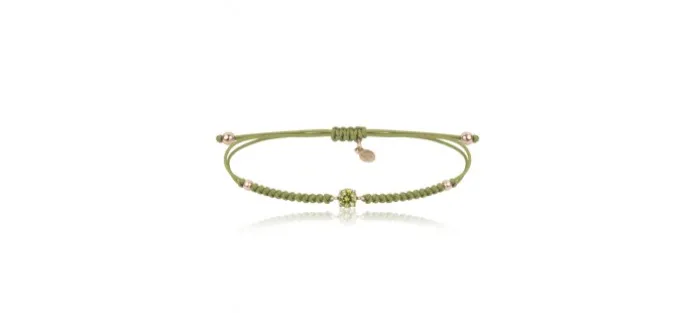 Pulsera de plata con baño de oro rosa, circonitas y nylon.