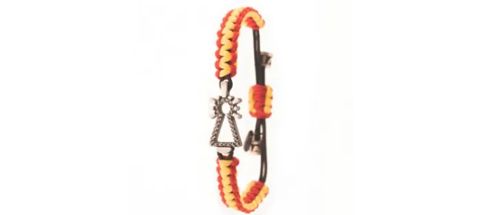 PULSERA VIRGEN NYLON CON BRILLANTES NEGROS ESPAÑA