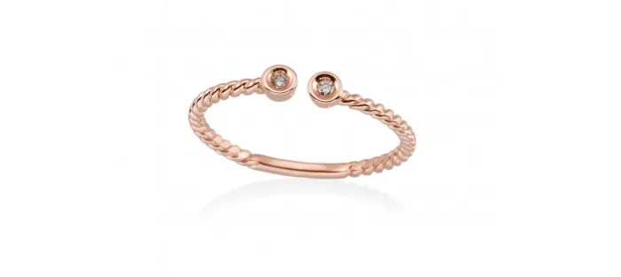 Anillo de oro rosa de ley (750/1000) con 2 diamantes de peso total 0,03 qt. (Color: Wesselton (H) Pureza: SI).
