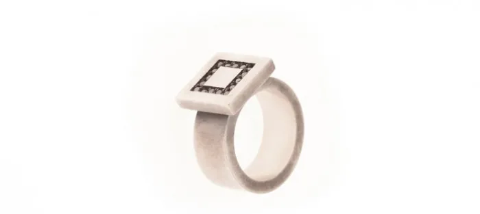 Anillo en plata envejecida de primera ley (925), lleva engastados 16 diamantes negros de 1,6mm, con un peso aproximado de 0,34 Quilates.