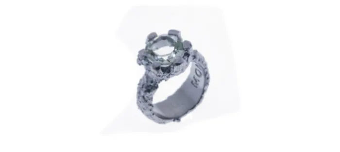 Anillo texturado de plata envejecida de primera ley (925) con una Prasiolita natural de 10mm.