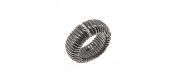 Anillo elástico de cerámica negra brillo con diamantes blancos y oro blanco de 18 K.