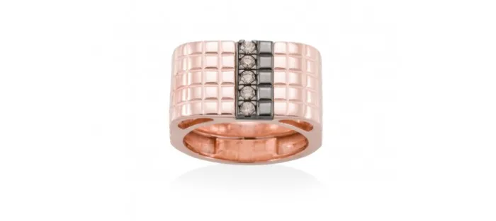 Anillo de plata de primera ley (925) con baño de rutenio y chapado en oro rosa de 18kt con circonita coñac.