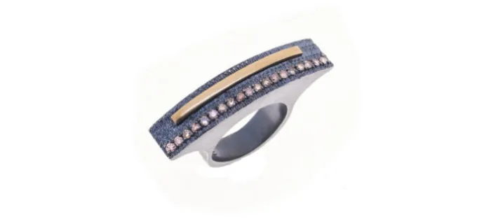 Anillo de plata envejecida de primera ley (925) y oro amarillo. En la parte superior lleva engastados 19 diamantes color coñac de 1,9mm con un peso aproxiamdo de 0,62 Cts.