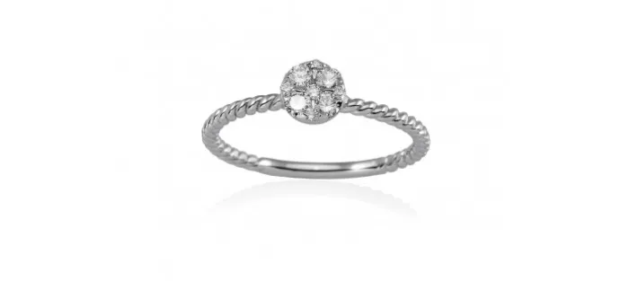 Anillo de oro blanco de primera ley (750/1000) y 9 diamantes de peso total 0,21 qt. (Color: Wesselton (H) Pureza: SI).