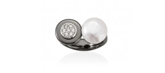 Anillo de plata de primera ley (925) con baño de rodio y rutenio con circonita blanca y perla cultivada.