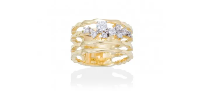 Anillo de plata de primera ley (925) chapada en oro amarillo de 18kt con circonita blanca.