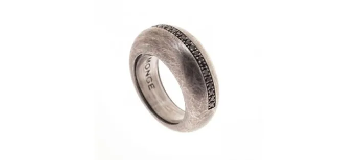 Anillo de plata envejecida de primera ley (925) que lleva engastados 23 diamantes negros de 1,5mm con un peso aproximado de 0,37 Quilates.