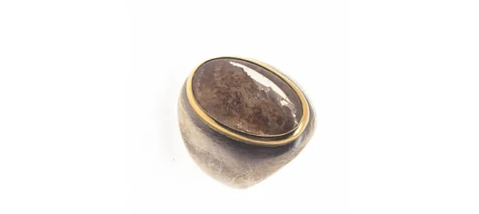 Anillo de plata envejecida de primera ley (925), oro amarillo y Cuarzo Lodolita.