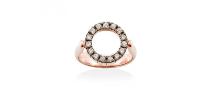 Anillo de plata de primera ley (925) chapada en oro rosa de 18kt con circonita coñac.