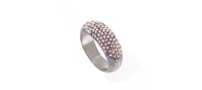Anillo de plata envejecida de primera ley (925) que lleva engastados 95 diamantes coñac de 1,5 mm con un peso aproximado de 1,54 Cts.