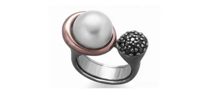 Plata rosa, Zirconitas negras y Perla Blanca.