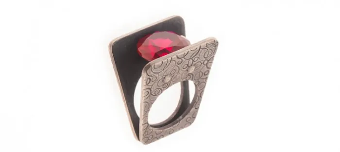 Anillo de plata envejecida de primera ley (925) con Zirconita.