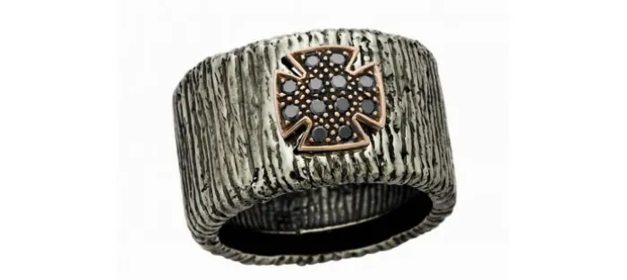 Anillo en Plata Envejecida con baño de rutenio, oro rosa y diamantes.