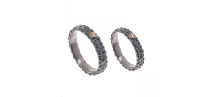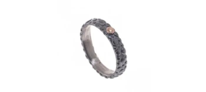 Anillo de plata envejecida de primera ley (925), boquilla de oro rosa y diamante G, Vs1.