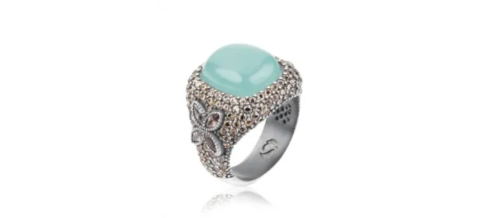 Anillo de plata, calcedonia y circonitas.