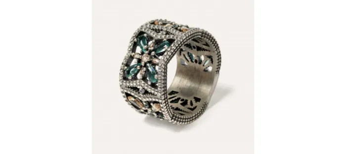Anillo de plata de ley 925 con acabado envejecido y circonitas.