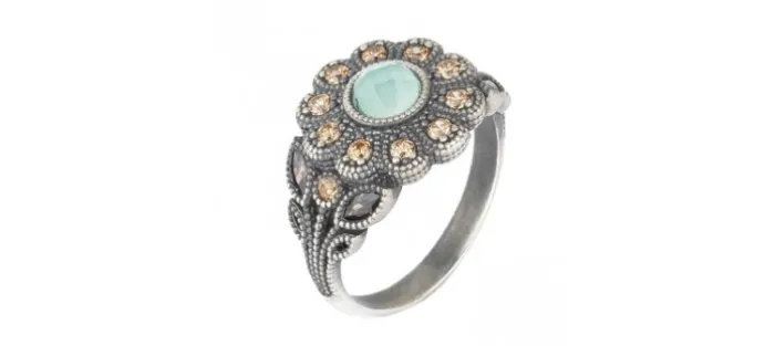 Anillo de plata de primera ley (925), Calcedonia y Circonitas.