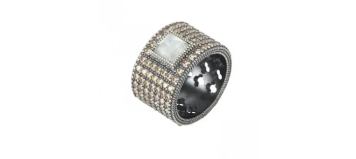 Anillo de plata de primera ley (925), Calcedonia y Circonitas color champagne.