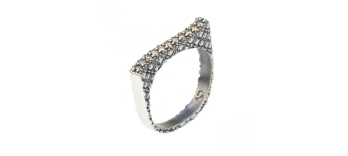 Anillo SUNFIELD de plata con brazo de 0,3 cm de ancho y circonitas de color cava.