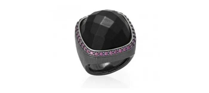 Anillo de plata de primera ley (925) con baño de color, zirconitas y onix.