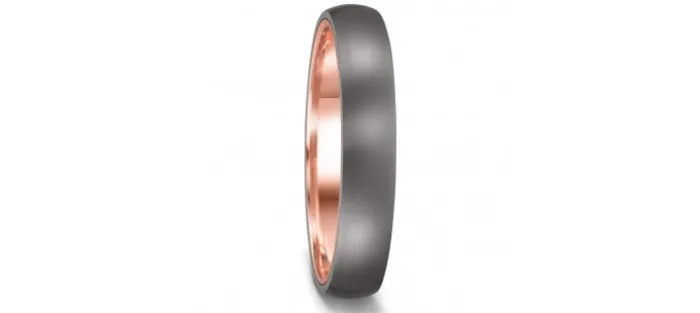Anillo en tantalio gris grafito se combina con el oro rojo suavemente brillante para formar una unidad sólida. Ancho de anillo 4mm. Superficie mate.