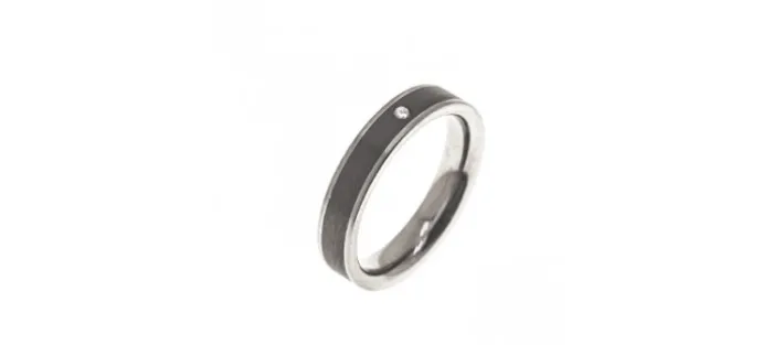 Anillo de acero inoxidable y carbono, un brillante 0.02 cts. Anchura del total 4.0 mm.