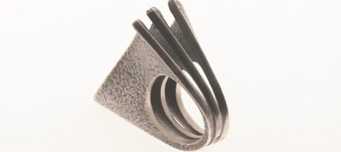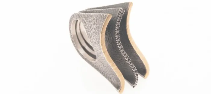 Anillo de plata envejecida de primera ley (925) y oro amarillo. En la parte superior lleva engastados 22 diamantes coñac de 1,4mm y con un peso aproxiamdo de 0,35 Quilates.